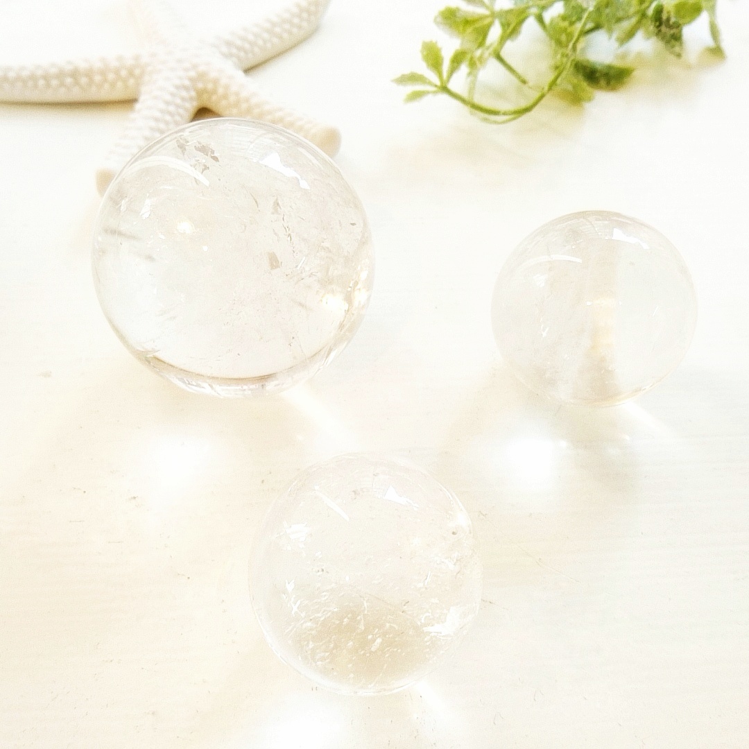 水晶球が入荷してきました☆彡 透明感があって非常に綺麗で お部屋の浄化やインテリアとしてもオススメです! 今回は、直径5.5cmから3.5cmまでのサイズが いろいろ入荷してきているので、 お手頃な水晶球をお求めの方は、 今がチャンスです