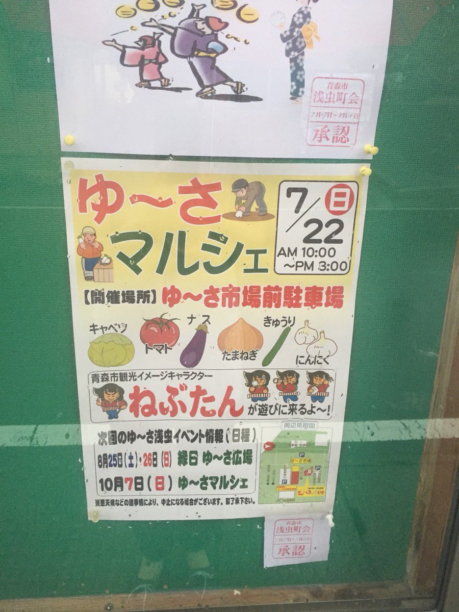 道の駅・ゆーさ浅虫では 7月22日(日) ゆーさマルシェ( 10:00-15:00)を開催します。詳細は添付画像をご覧ください。