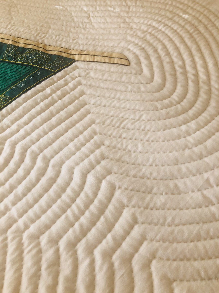 #創作のきっかけが知りたい タグをお借りして。 ハワイアンキルトを5年くらい習っていましたが、どうしても和のものが作りたくて。 たまたま見た浮世絵展で刺激を受け 浮世絵を布と糸で忠実に表現できたらなぁと思ったのがきっかけ。#勝川春好#浮世絵きると pic.twitter.com/Sh9prEjdoK
