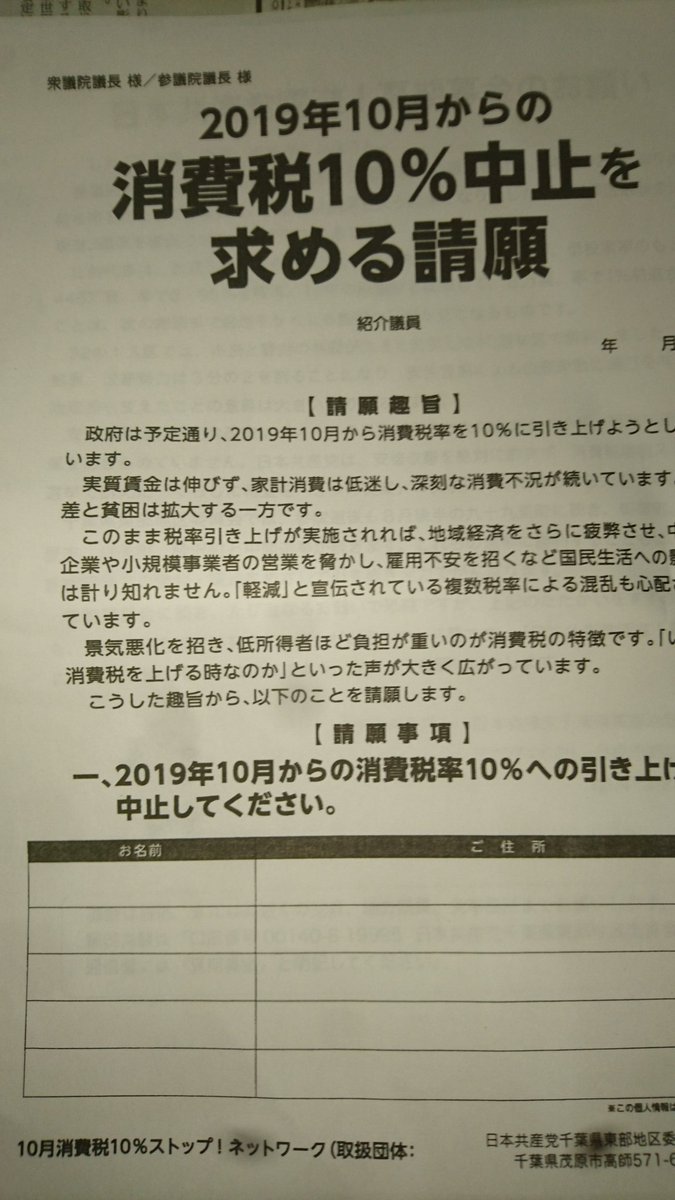 消費税10%中止を求める請願、署名を集めましょう!