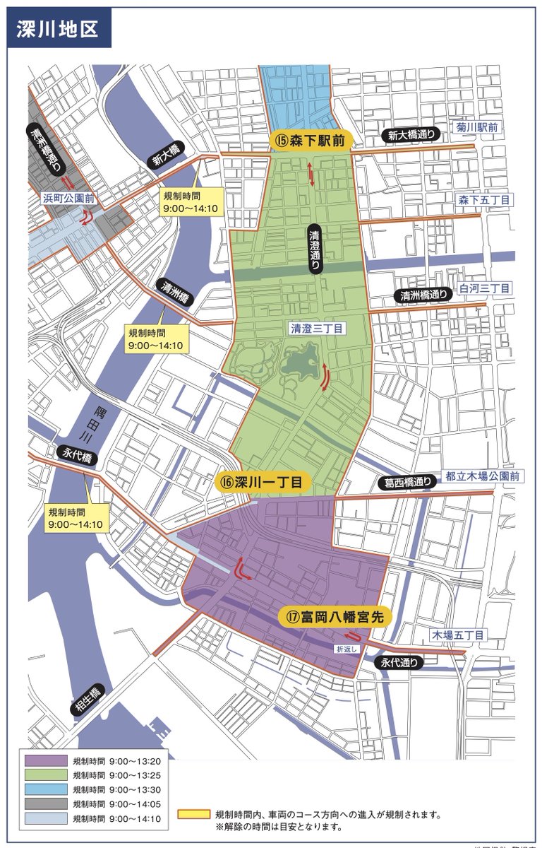 東京マラソンの交通規制の案内が ポスティングされていました。 森下、清澄白河地区は、9:00〜13:25です。 地域は添付画像をご確認ください。