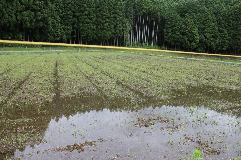 地元農家の方々にご協力を頂きながら育てている酒造米山田錦。昨日、水を張った田の土をかき混ぜて表面を平らにする「代掻き」という作業を行いました。苗も順調に成長しています。
