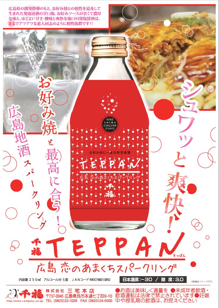#お好み焼き に合う発泡#清酒 「千福TEPPAN(てっぱん) 広島恋のあまくちスパークリング」が発売!おみやげ売り場を中心に、各所で販売されますので、飲んでみてね。(資料提供PDF)⇒https://www.pref.hiroshima.lg.jp/uploaded/attachment/315981.pdf …※20歳以上限定です。#広島pic.twitter.com/PzBDb8DwHI