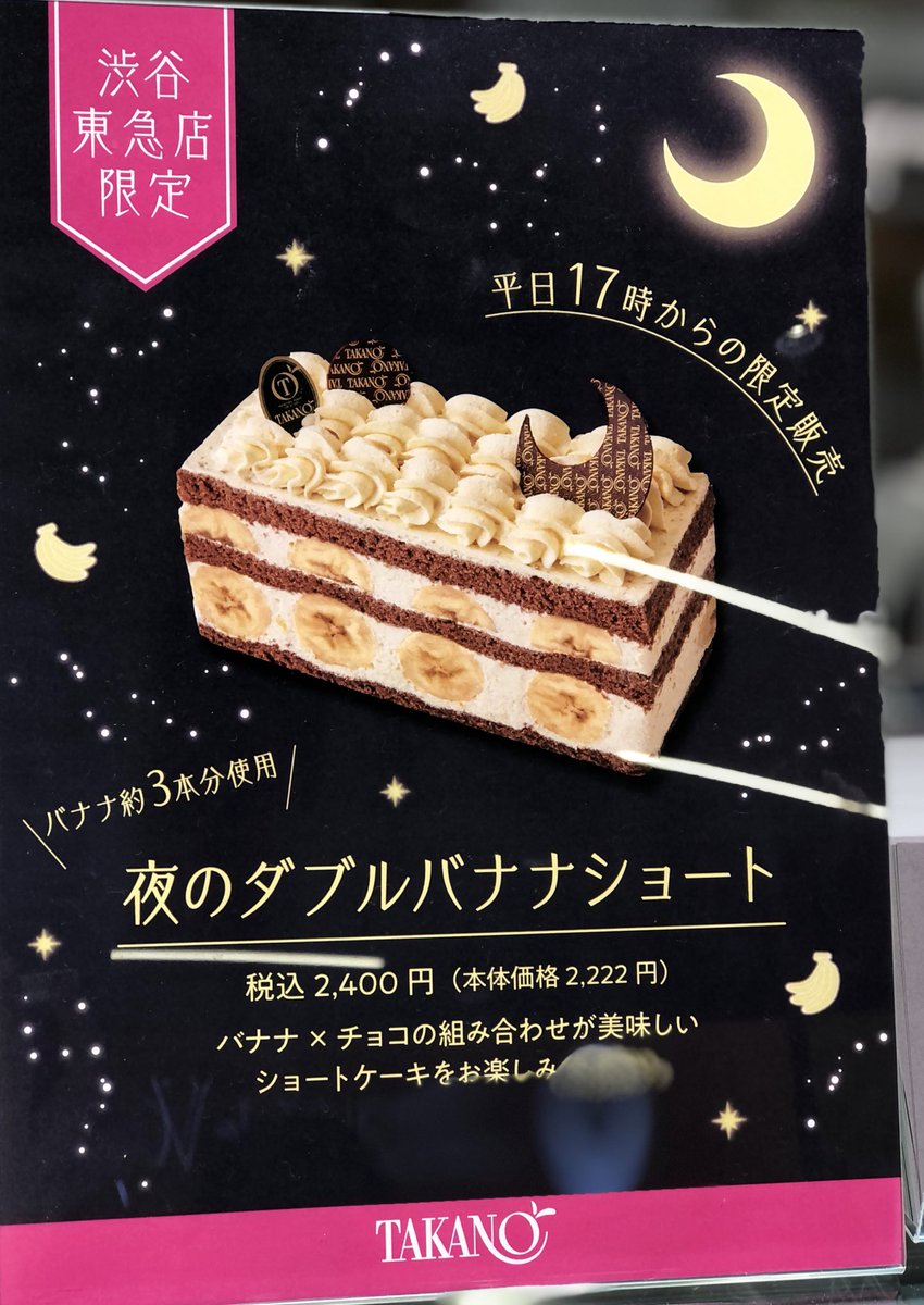 〈新宿高野〉 渋谷東急フードショーでしか買えない! 平日17時から限定販売している 『夜のダブルバナナショートケーキ』です