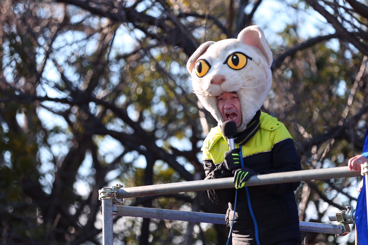代表の #猫ひろし さん登場! 招待ランナーとして、ランナーへの声かけや沿道の声援に応えたりと、とても丁寧に対応されてましたー! 猫ちゃん、東京五輪出場目指してガンバレ〜!#ユニクロ女子陸上競技部 pic.twitter.com/RtzsDDHixb