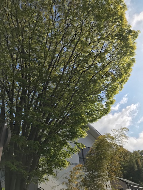 #緑 がきれいな季節です。 皆さんをお出迎えする入口には、大きな#けやき の木がありますが、早くも多くの葉をつけました。 もう少しすると、庭園にある#オオムラサキツツジ も咲き始めますので紹介します。#自由民権#町田市 pic.twitter.com/wQA2FGvQn7