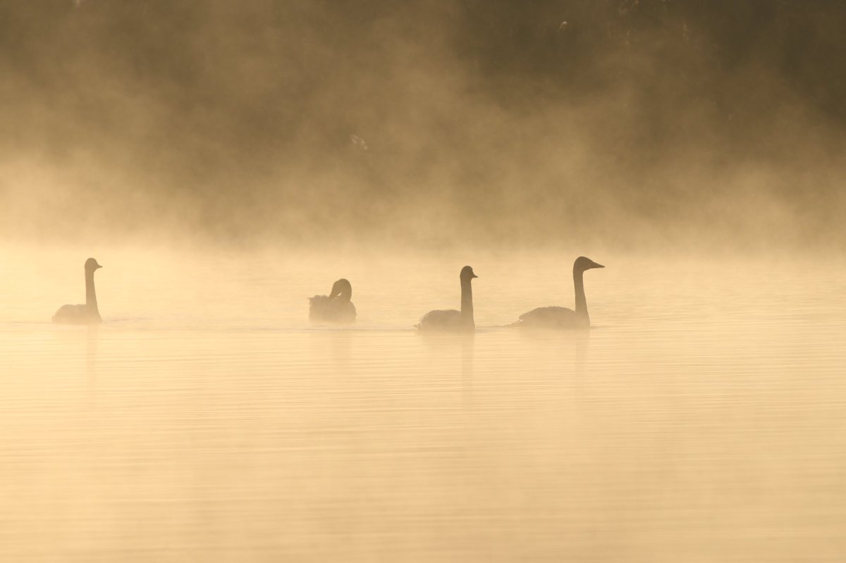 本日の鳥撮① 今朝の川は薄暗いうえに動きが少なく。。。 でも、白鳥さんと撮らないわけにはいかない。