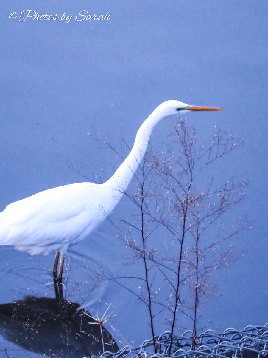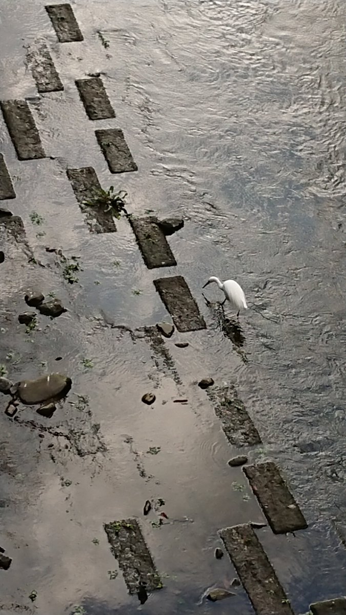 白鷺さん 近所の川でお夕飯 食後のお散歩 終わったら ちょっと眠たくなったかな……