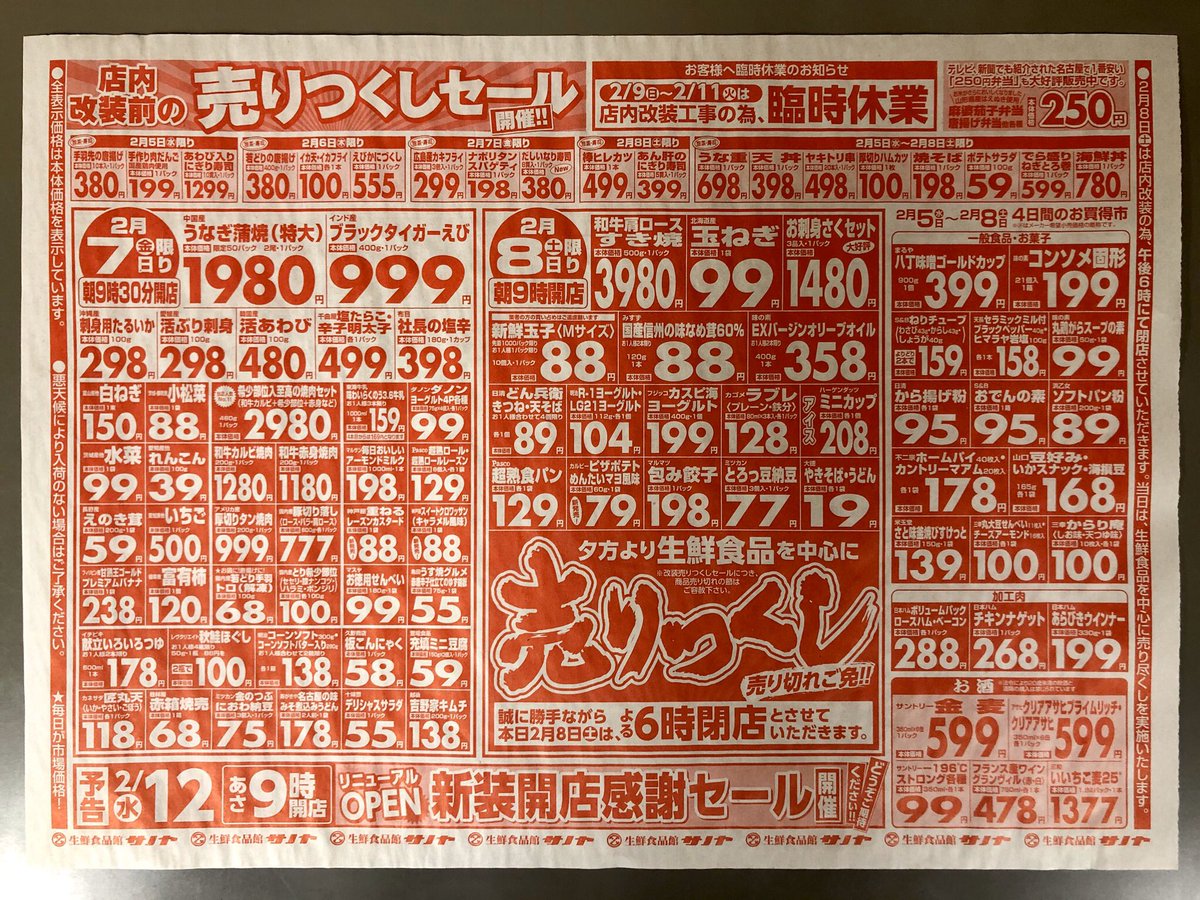 明日からのチラシです。 改装前最後のチラシ。改装前の姿を目に焼き付けてください。