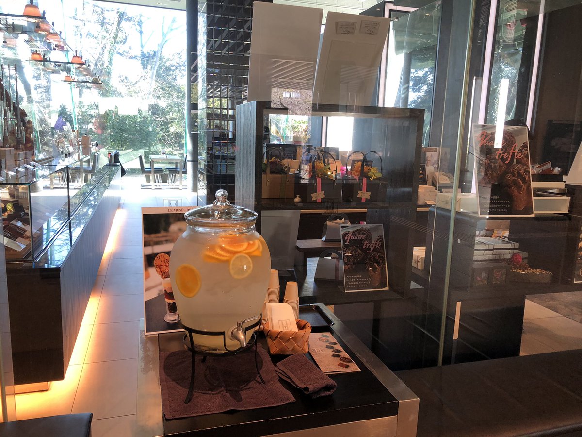 県立美術館には、辻口さんのカフェがあります。 サービスのオレンジ水