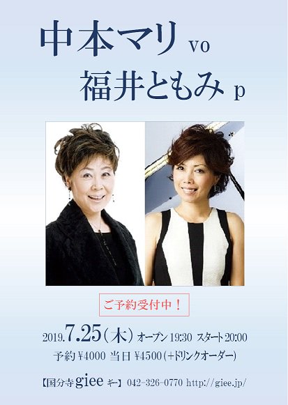#国分寺ギー ご予約受付中のライブ♪ ◆7/25(木)20:00「#中本マリ#福井ともみ」 http://giee.jp/info/2604538 ◆8/12(月・振休)19:30「究極のトリオ」#梅津和時#清水一登#太田恵資 http://giee.jp/info/2676996 ※席数が限られていますのでお早めにご予約下さい。#LIVE#ライブ#ジャズヴォーカルpic.twitter.com/k2YqMEA8oV