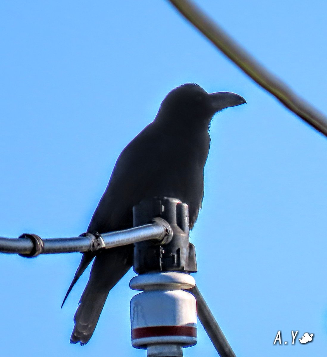 青空に朝日が燦々、立春の朝☀️ 🌬️北風が冷たいです😖 いつもの梢でカワウさんが羽繕い🌿 あっ❗目が合った👀⁉️ 只今の気温🌡️℃ 本日の最高気温は🌡️11℃ 午後から☁️雲が広がりはじめる予報です。
