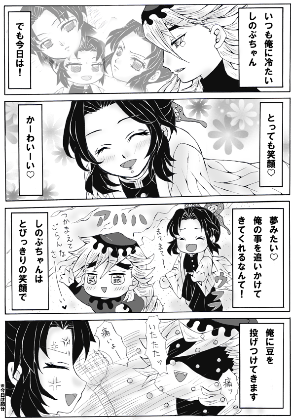 約1か月ぶりの鬼滅マンガ また童磨としのぶさんの4コマです 描きやすいんだ、この2人のネタ 鬼滅を知らなくても大丈夫なネタになっております☆