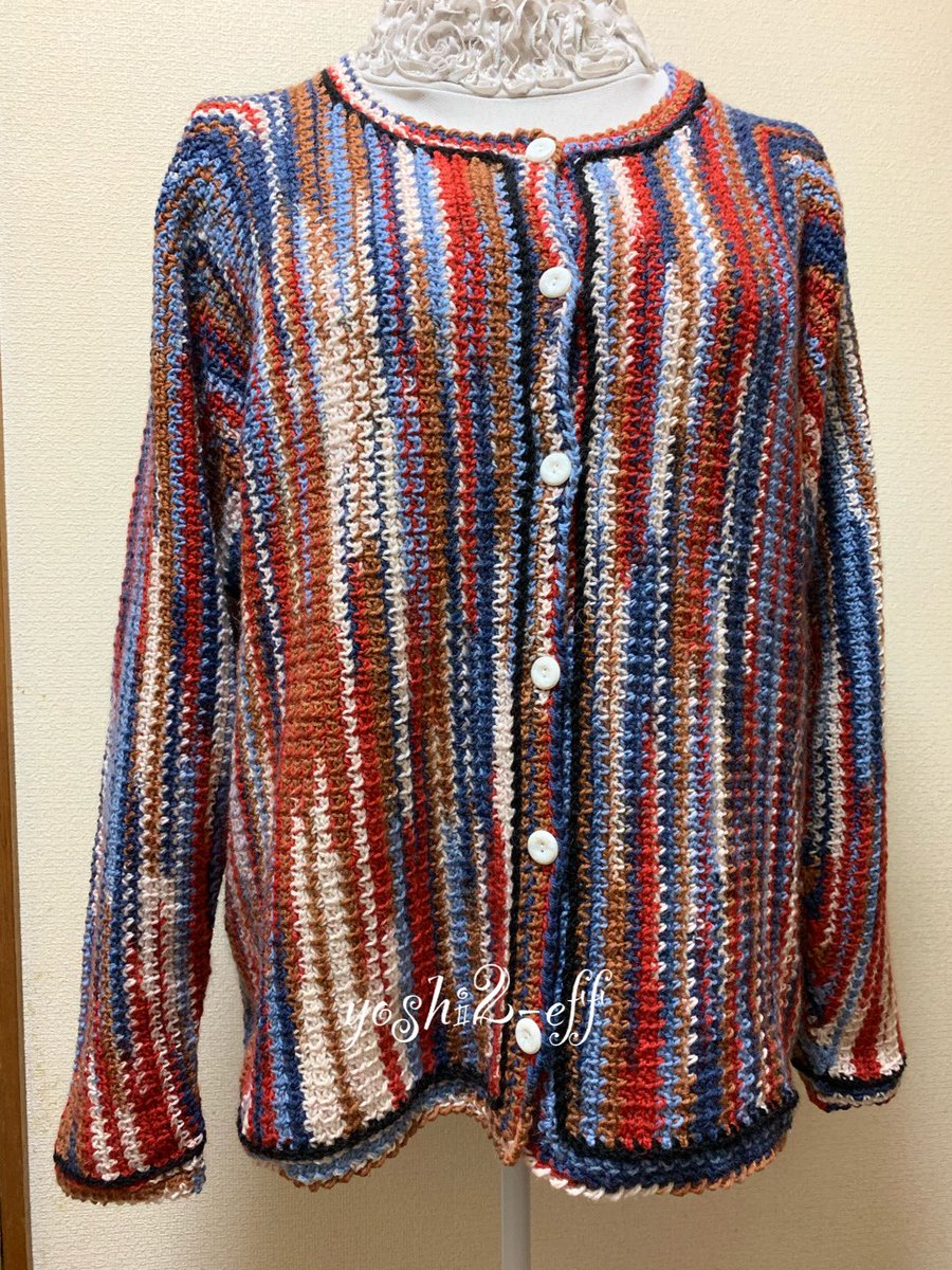 #大久保蓉子先生 監修の#細方眼 のクラスで作成しました。真夏に編んでて、これを着る機会は絶対無いなと大汗かきながら思っていたのに、今日はこのセーターのありがたみが身に染みる寒さ。細めの並太をかぎ針編なので地厚。表裏わかりにくいので夫曰く私にぴったり(おっちょこちょいだから)。 pic.twitter.com/EJHXiDXw9z