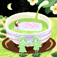 インフルエンザで寝ているとヒマだなぁーと思い、昔描いた絵を見返してみた。なんでこんな絵になったのかは覚えていないけど、緑茶をテーマにして描いたらしい。これは昔夏かしお絵かき掲示板というツールを使って描いたもの。今はどうなっているのかなぁ。