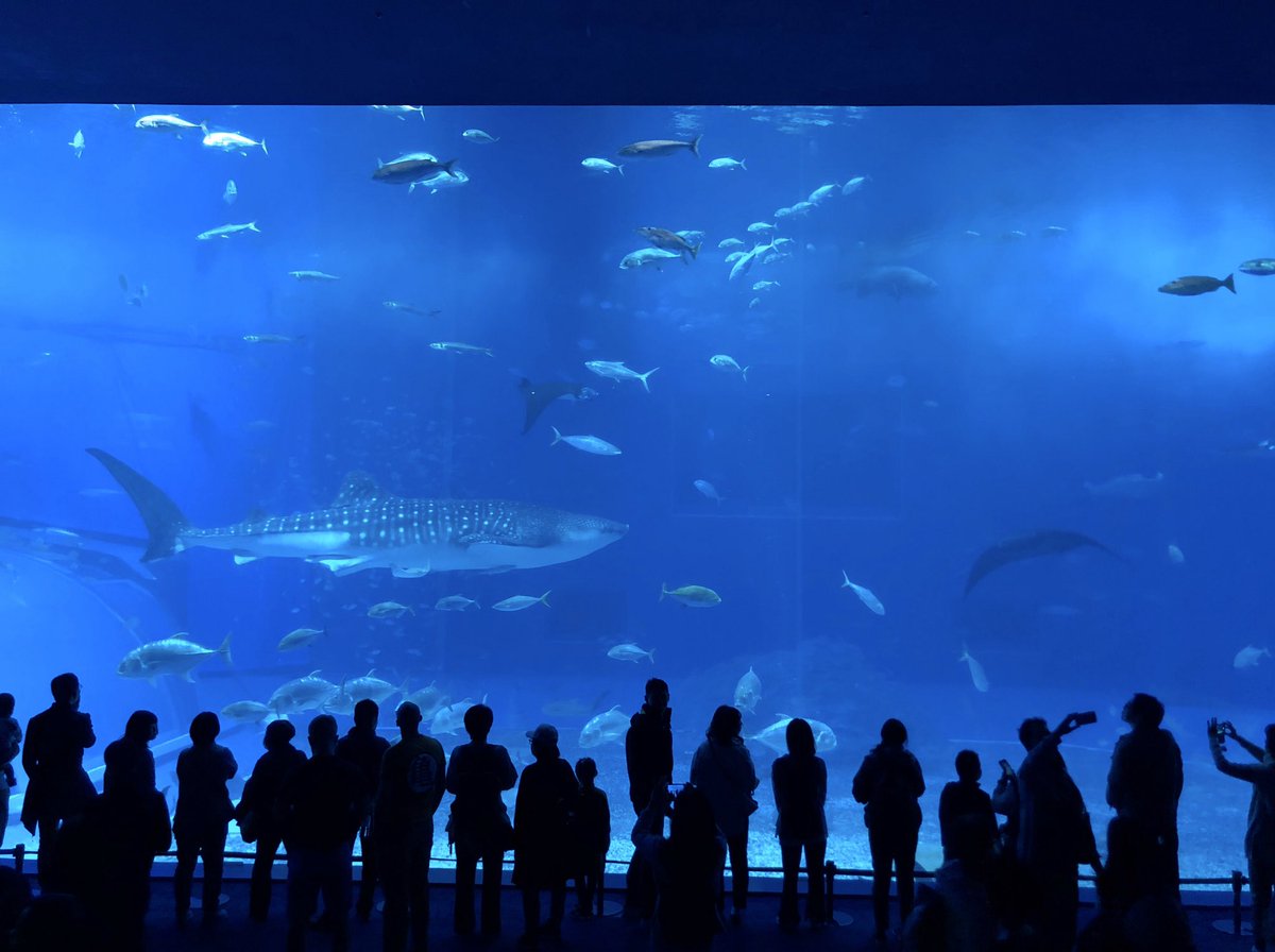 美ら海水族館から1枚! 人影がライブみたいだwww ジンベーーーーイっ! 撮影レンズ:50mm f1.8 https://amzn.to/34ss3yw