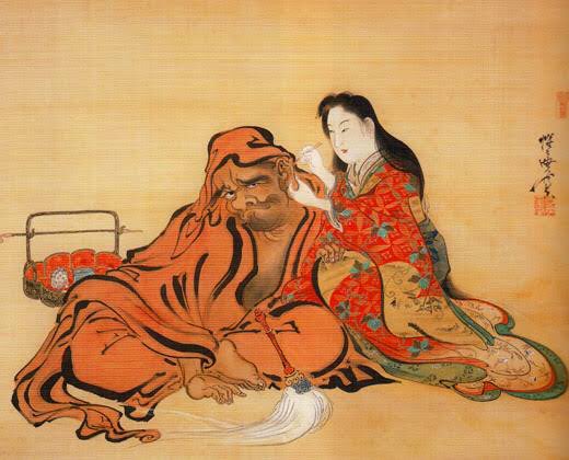 俺推しの浮世絵師も。 月岡芳年「雪中常盤御前図」無惨絵で有名ですが、こんなエモい絵も描く。 河鍋暁斎「達磨耳かき図」暁斎の2つのスタイルが融合中。 鍬形蕙斎「桜花遊宴図」は普段のゆるさはなくガチ描き。