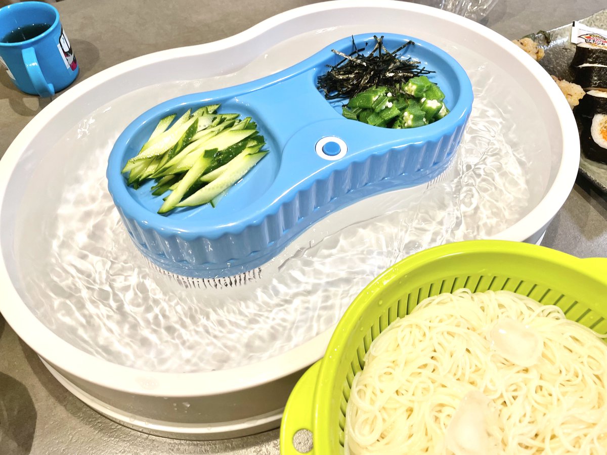 (理想)流しそうめんはじめました (現実)お部屋で打ち水はじめました