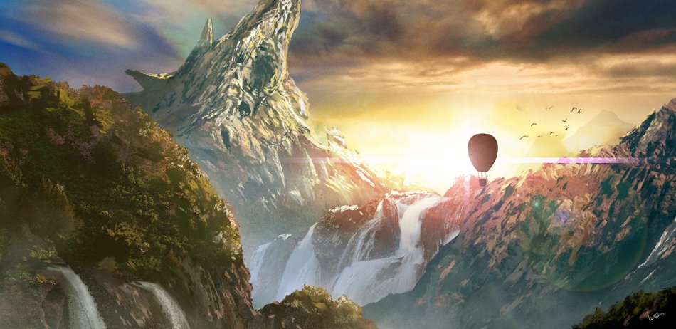 【オリジナルイラスト】 「巨骸の地」 デカイ骨にはロマンがある!…という勢いで描きました。 山よりも巨大な竜が、死して大地の一部になる。そんなイメージ。