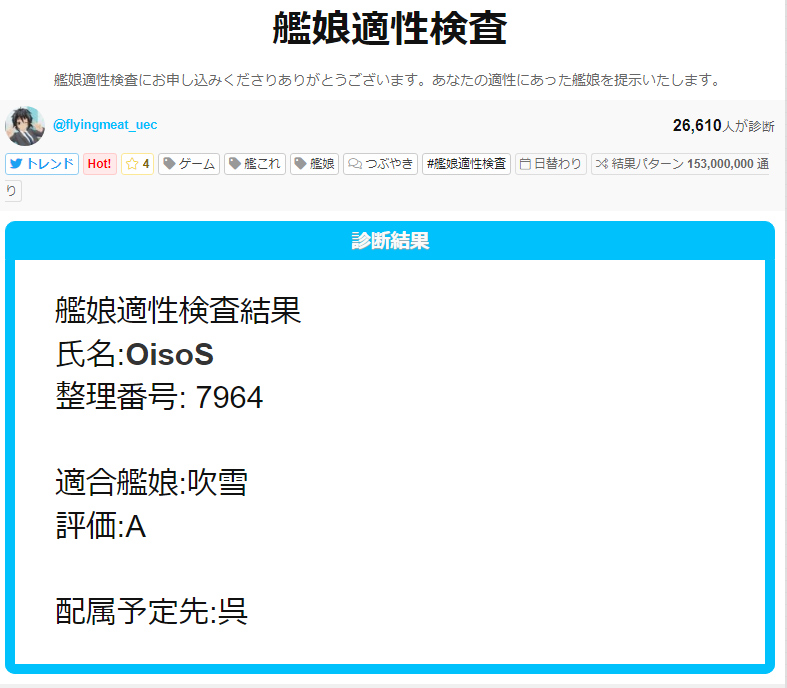 #艦娘適性検査#shindanmaker https://shindanmaker.com/937557 -