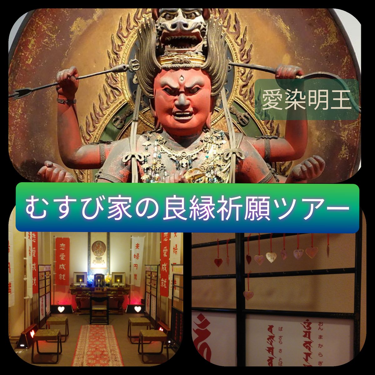 ツアーの行程① 【愛染明王参拝と絵馬奉納】 愛染明王の左右の手には 二つで一つの働きをする弓と矢を持っていて「敬愛」と「融和」とを表しています。 弓矢の飛ぶが如く 男女の縁結びの効果が 早く現れると言われています。 ⇒http://musubyya.blog.fc2.com/blog-entry-148.html?sp …