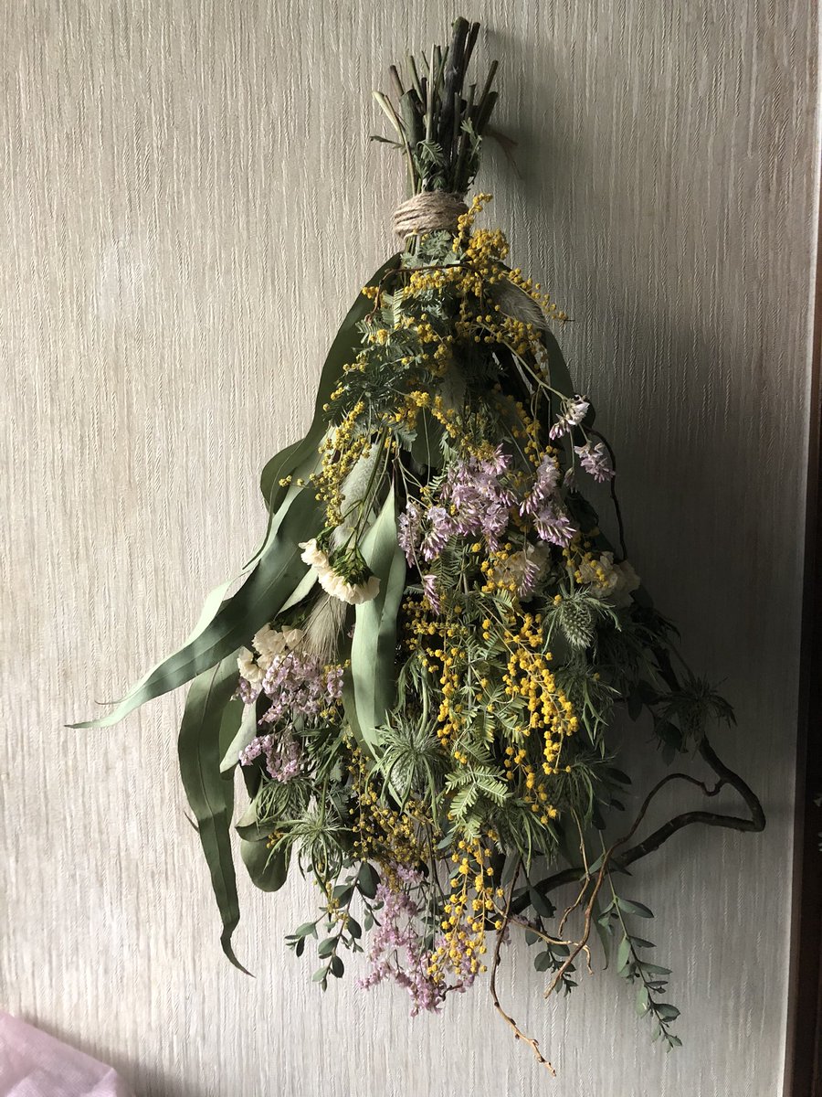 #なかむぅFlowerGarden#花のある暮らしを楽しむ#春一番ミモザのスワッグpic.twitter.com/1YJj89OThh