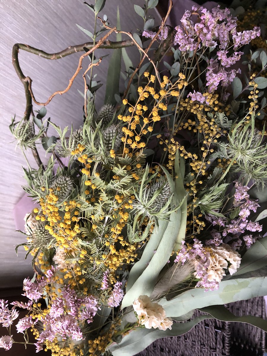 微調整して仕上がりました♡(´˘`๑)春一番ミモザアカシアスワッグ(。•ᴗ•。)♡