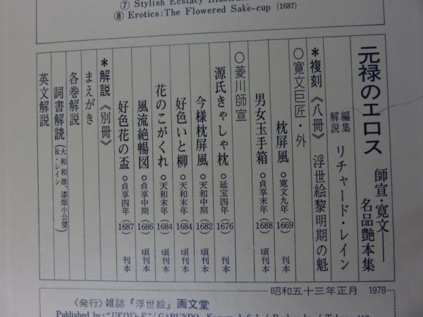 #元禄のエロス#師宣・寛文#名品艶本集#リチャード・レイン(編集・解説) 画文堂 昭和53年 ■復刻版 ■限定500部の内 №103番 販売価格8000円#浮世絵#菱川師宣#元禄 pic.twitter.com/6yI1CpMO1M