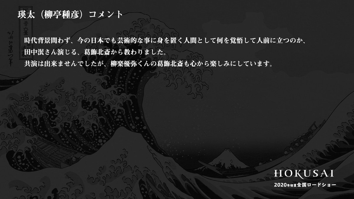 #蔦屋重三郎 役#阿部寛 さん 老年期の北斎とパートナーを組む 人気戯作者・#柳亭種彦 役#瑛太 さん 青年期の北斎のライバル 美人画の大家・#喜多川歌麿 役#玉木宏 さん#橋本一 監督のコメントをご紹介! http://hokusai2020.com/news/#HOKUSAIpic.twitter.com/V37ovN6rhc