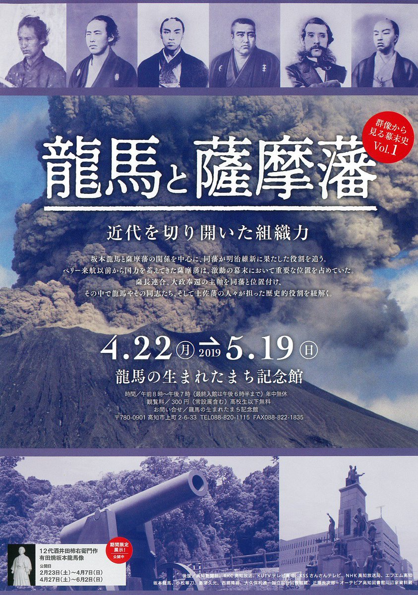 ◎企画展 群像から見る幕末史vol.1「龍馬と薩摩藩 近代を切り開いた組織力」 4/22(月)より開催します 坂本龍馬と薩摩藩の関係を軸に、同藩が明治維新に果たした役割と龍馬やその同志達、土佐藩が担った役割をご紹介します。 ↓詳細はHPをご確認下さい http://ryoma-hometown.com/notice