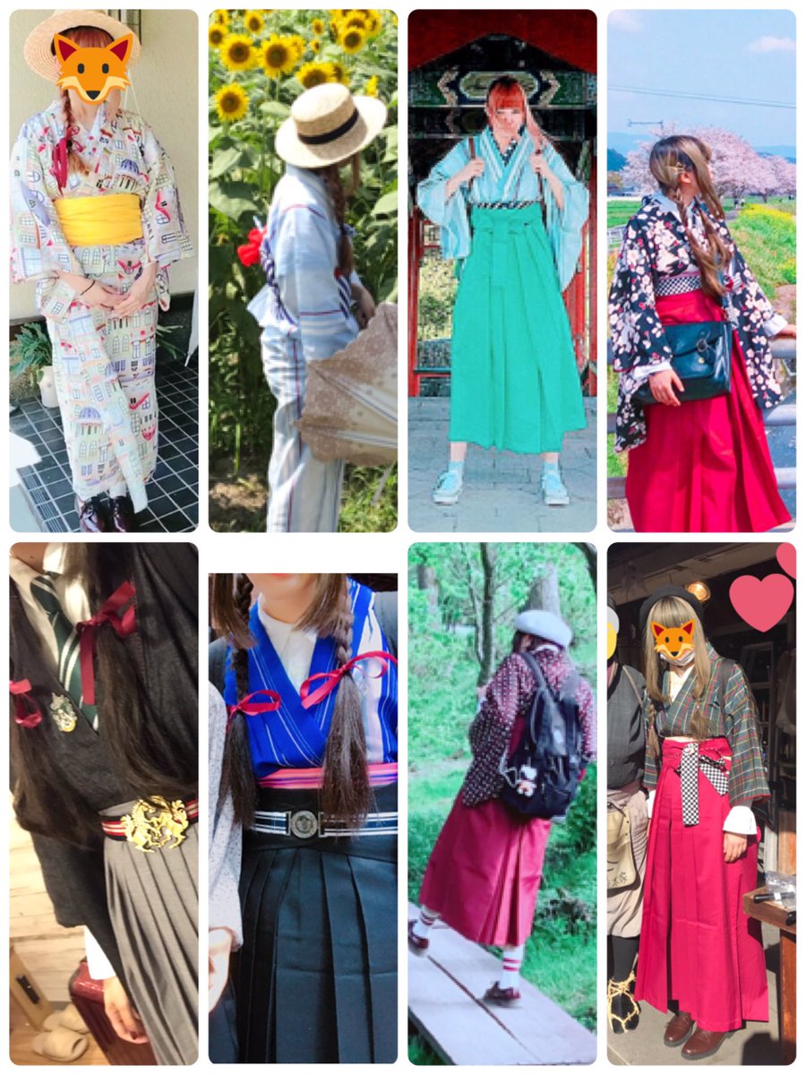 今まで着た着物(袴がほとんど)の写真をまとめたらめちゃくちゃカラフル