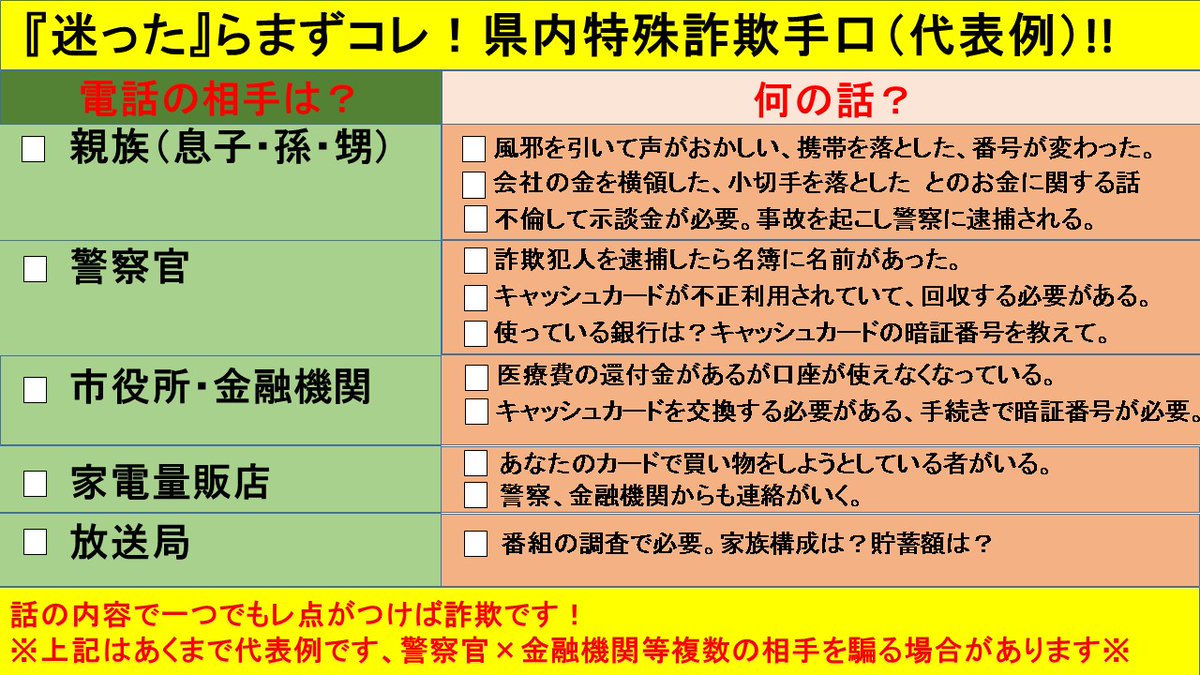 ☆家族や知人等に注意喚起願う!
