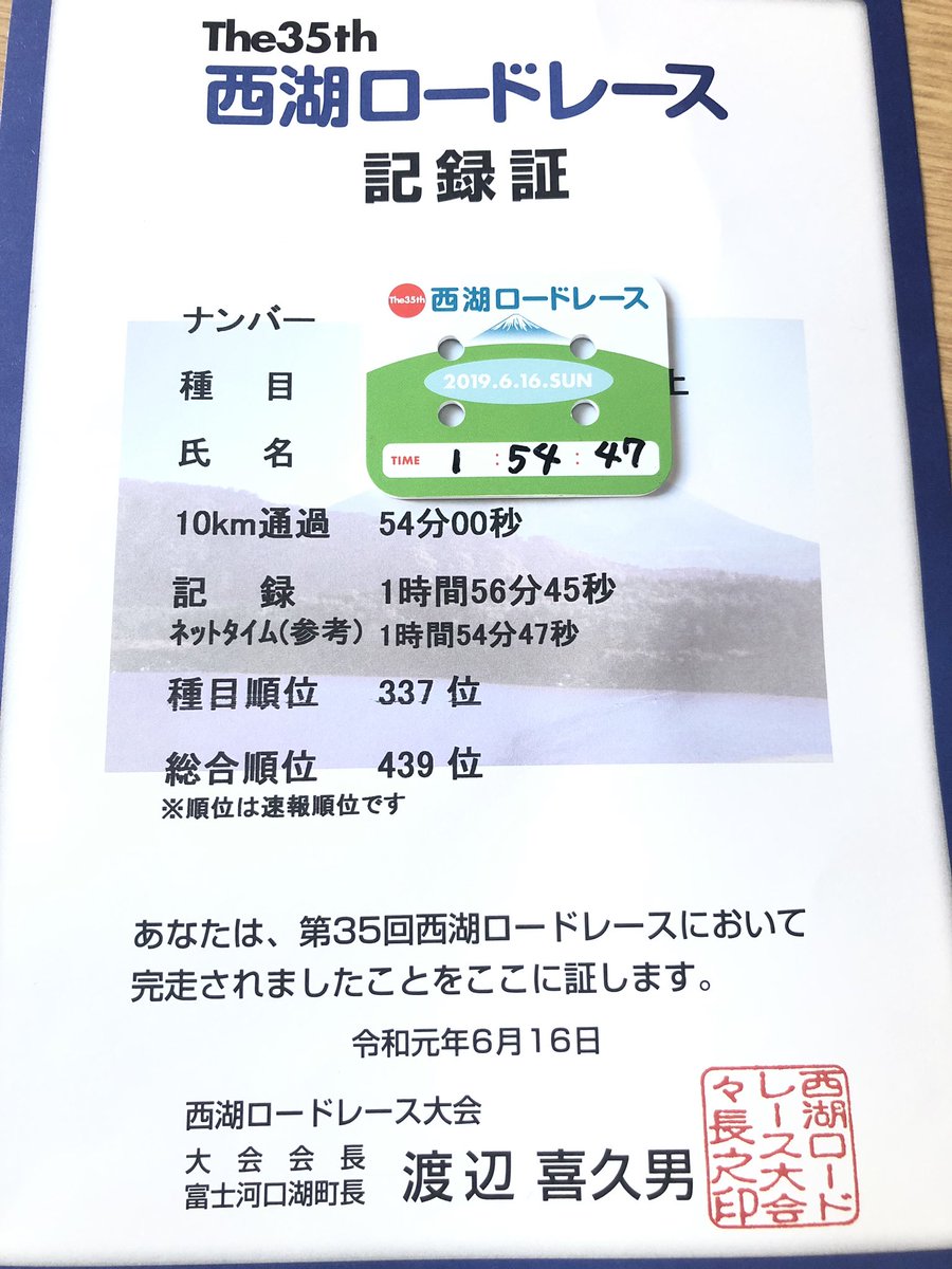 #西湖ロードレース の距離がハーフに変更になったけど 前日22時まで仕事で寝不足もあったり16キロで身体に異変が起きて止まったりして 力が入らなくなったりしたけど去年より速く走ってました。 良かった。 背中の筋トレとストレッチが課題になりました。 pic.twitter.com/996mG9426w
