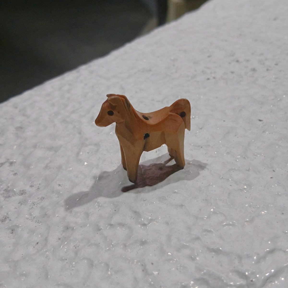 今、近所のゴミ置き場の塀の上で発見した木彫りのお馬さん。ちょっとカワイイと思ったけど…なんか怖いので写真だけ撮ったw