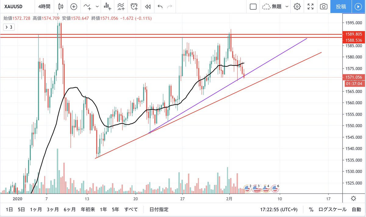 #ゴールド#金相場#貴金属 赤線で先ほど利確。 で、この後多分ここ割ると思う。ズドーンと。あとはどこで入るかだけ