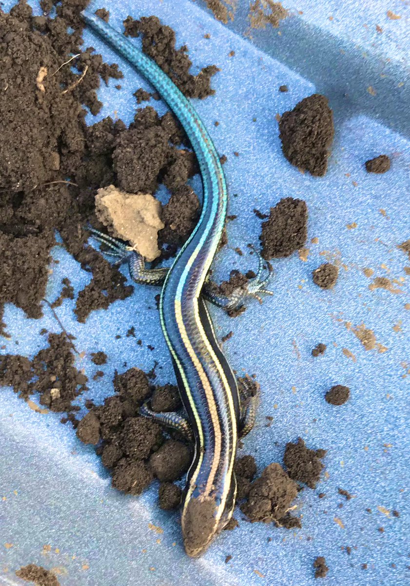 畑の天地返し終わった〜 牛ふんと腐葉土と 油かす混ぜてきた。 子どもと一緒に、無心で掘る。 途中、冬眠してたニホントカゲちゃん
