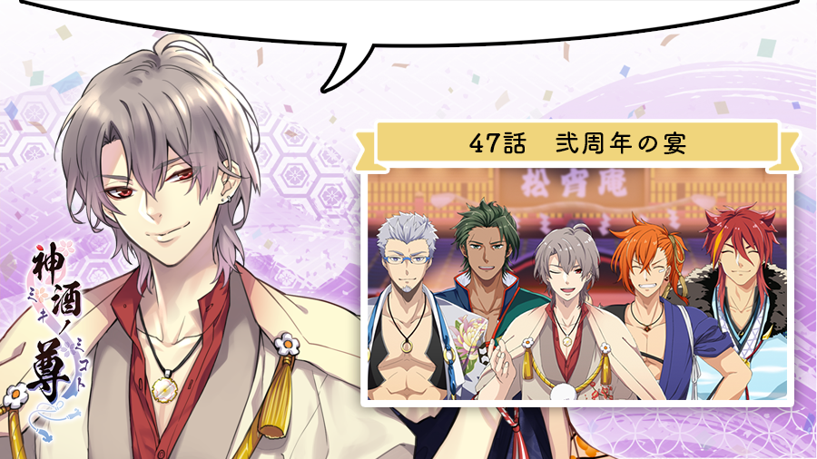寒「松宵庵開店弐周年の記念の日に、内輪で宴を開いたんだ。賑やかで楽しい宴だったぞ。これからも日本酒を盛り上げていくから、みんなよろしくな」 https://mikimiko.channel.or.jp/shortstorydetail.html?48 …