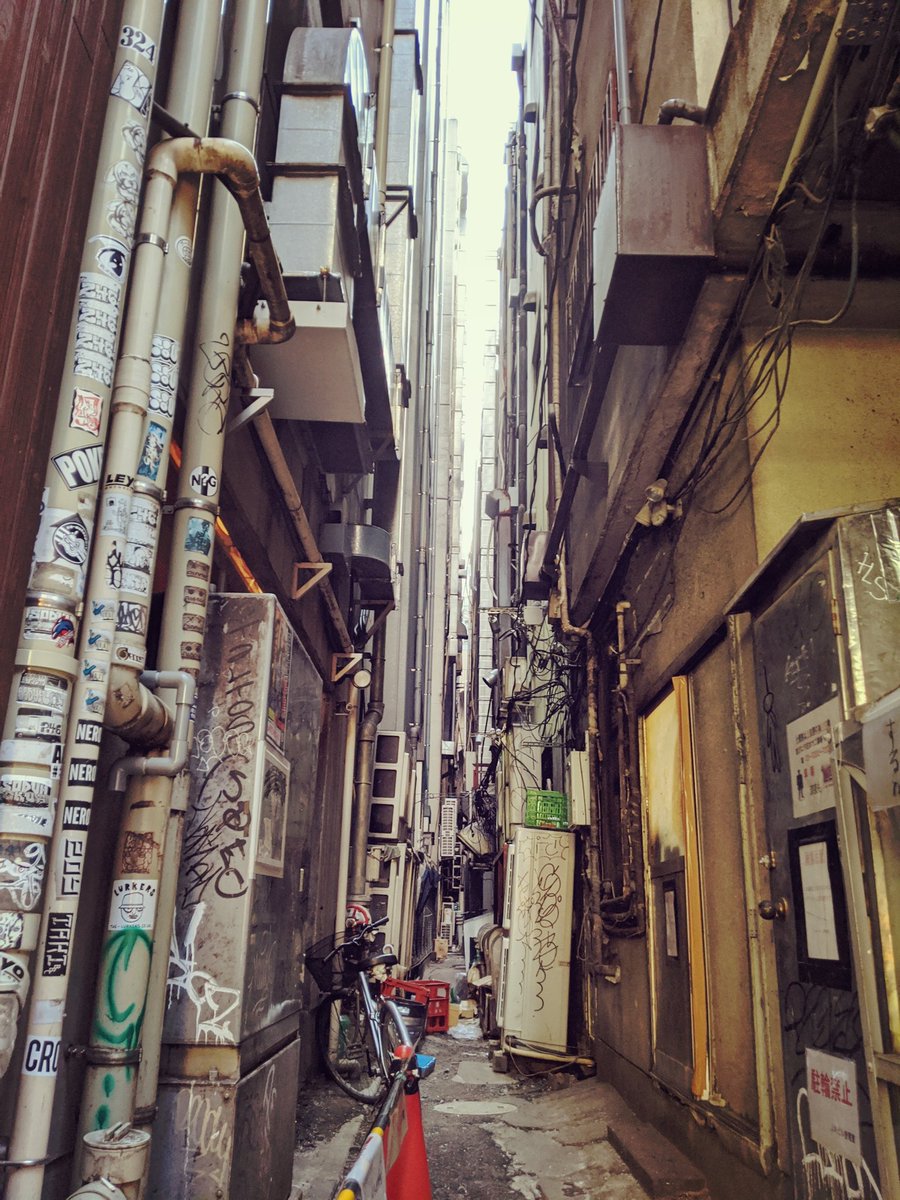 Some narrow alleys near Yotsuya heading west towards Shinjuku.