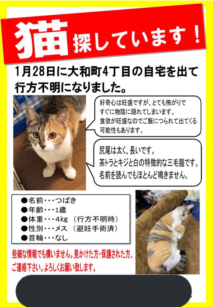 とか、学校に貼ってるの見たよ!とか、お家のポストに入っていたよ!とか!見かけた方はお写真と場所お知らせ下さい!#迷い猫探してます https://twitter.com/carrothouseyam1/status/1214165458498113538 …