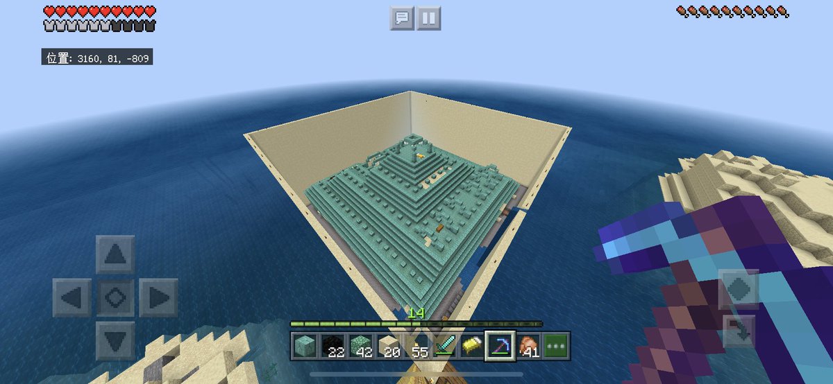 【海底神殿 移設日記】16日目 ・水抜き進行状況(20マス抜き) 121/121(11×11マス) ・見えてる部分の水抜き終了 ・次回、神殿内部の水抜き ・もしくは解体しながら水抜き ・しばらく休憩(拠点で作業) ・割と早く終わった気がする