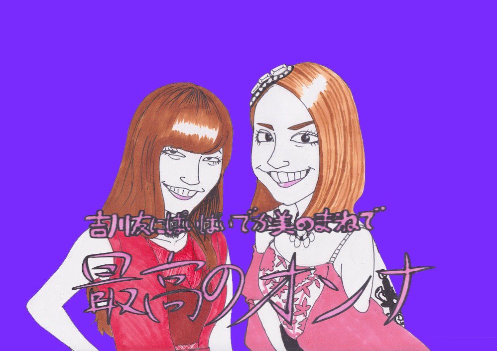 ふた昔前のものまね王座決定戦(針すなお風)に吉川友にぱいぱいでか美を描いてみた。 今日は調子がいいな。1日で2枚も描けるとは。