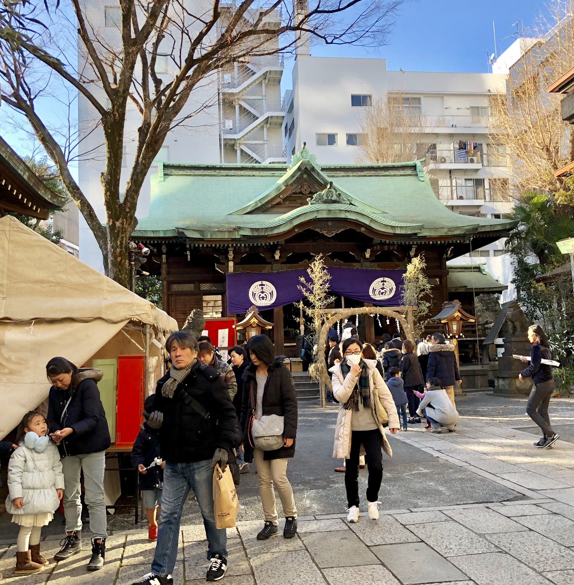 小腹すいたのでからあげクンマン片手に鉄砲洲稲荷神社に初詣。今年は5月3日4日が大祭だそうです。
