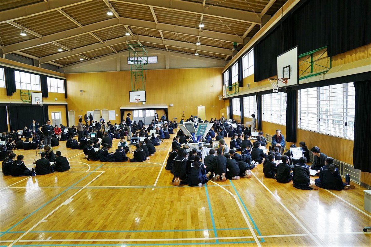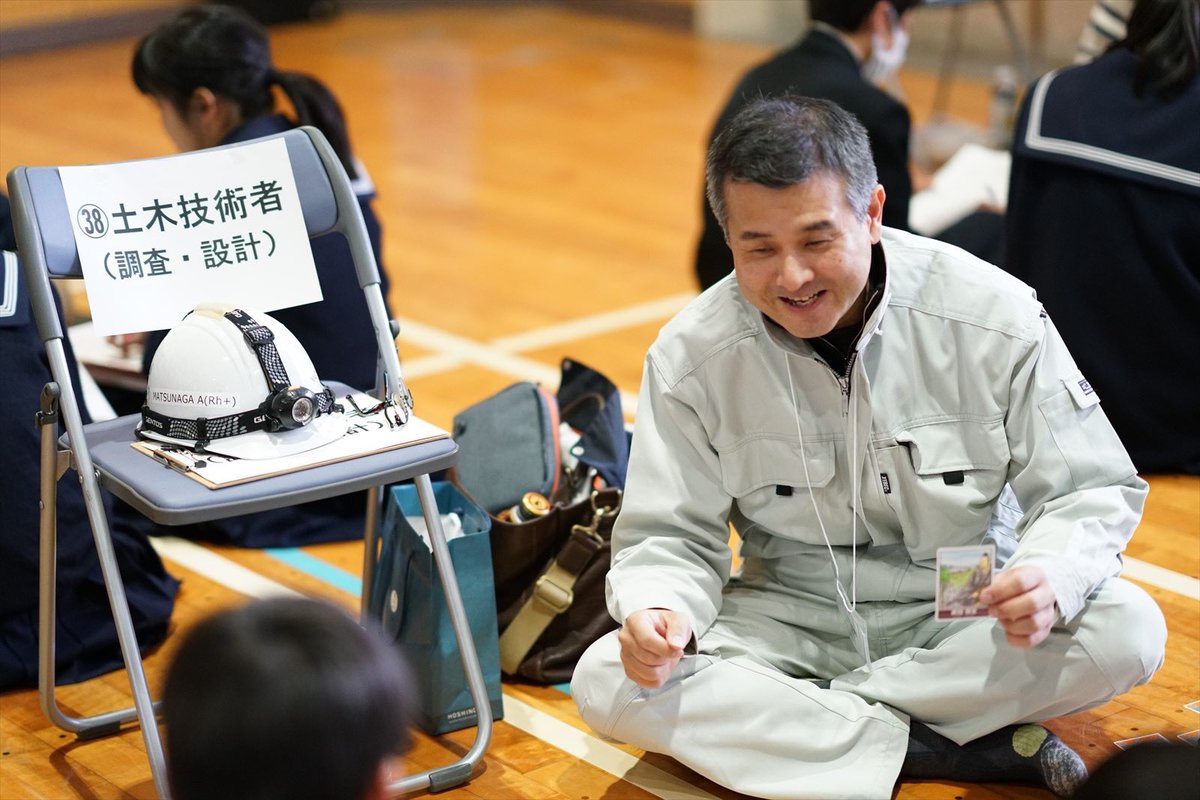 中学生にマンホール蓋とマンホールカード、土木偉人かるたの布教活動