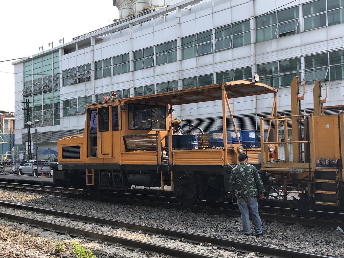 朝から昼までタイ国鉄の写真を撮りに行ってたんだけど、変なもの(保線車両?)が来た。 なぜか自転車も乗ってるし。 右奥からは