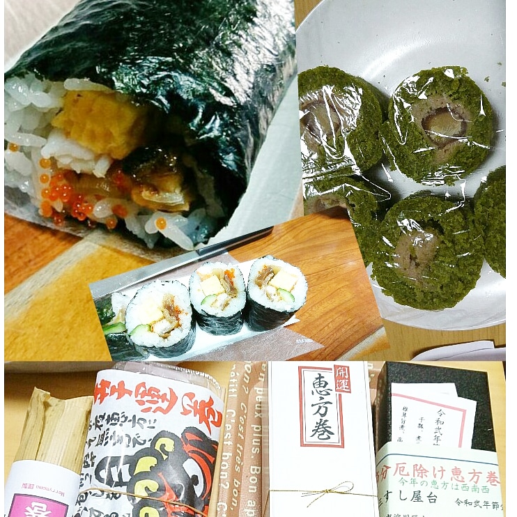 おはようございます。恵方巻5本(少しずつ五種類ですよ)食べました。子供のお弁当にも入れました。美味しい~