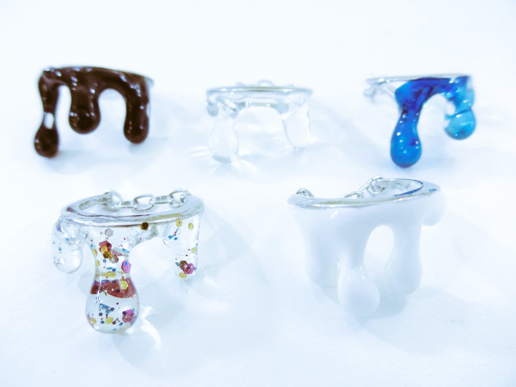 現在、多分絶対ギャラリーショップにて ご用意させていただいておりますのは、 こちらの、5色です。 ▷vili&ve 「ツキノシズクリング」 (各¥2200+tax)