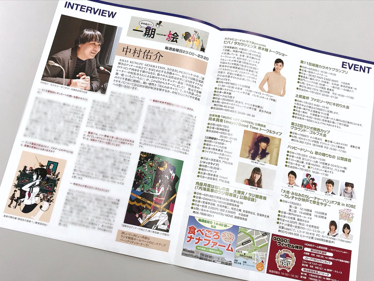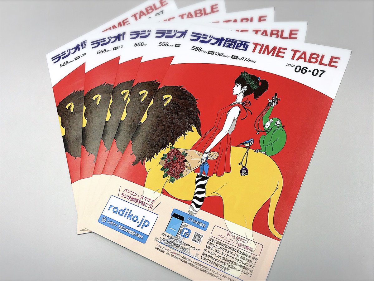 【阪急神戸線の駅に!】 中村佑介ラッピング列車が走る阪急神戸線の主要駅(神戸三宮、六甲、岡本、夙川、西宮北口)に、今月末までラジオ関西のタイムテーブルが置かれています。表紙も内面のインタビューも中村先生☆ぜひ手に入れてください。写真は三宮駅東改札。