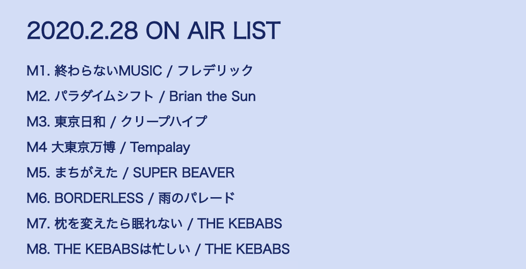 #マカロニえんぴつ#雨のパレード#androp#KingGnu#backnumber#きゃりーぱみゅぱみゅ#sumika#東京スカパラダイスオーケストラ#Nobelbright ※生放送なので変更の可能性があります。 -