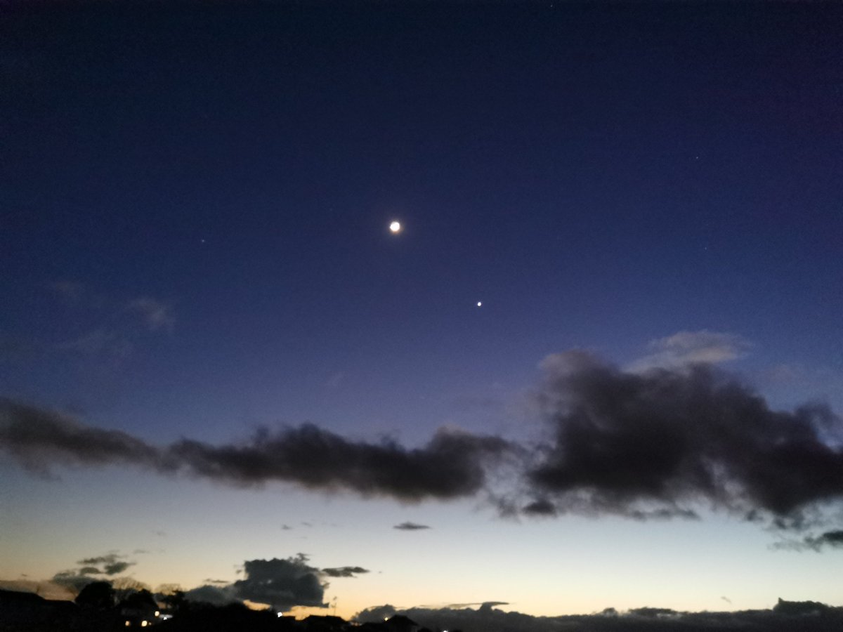 月齢10の月と金星.夕暮れから夜色に染められる影絵の時間.素敵