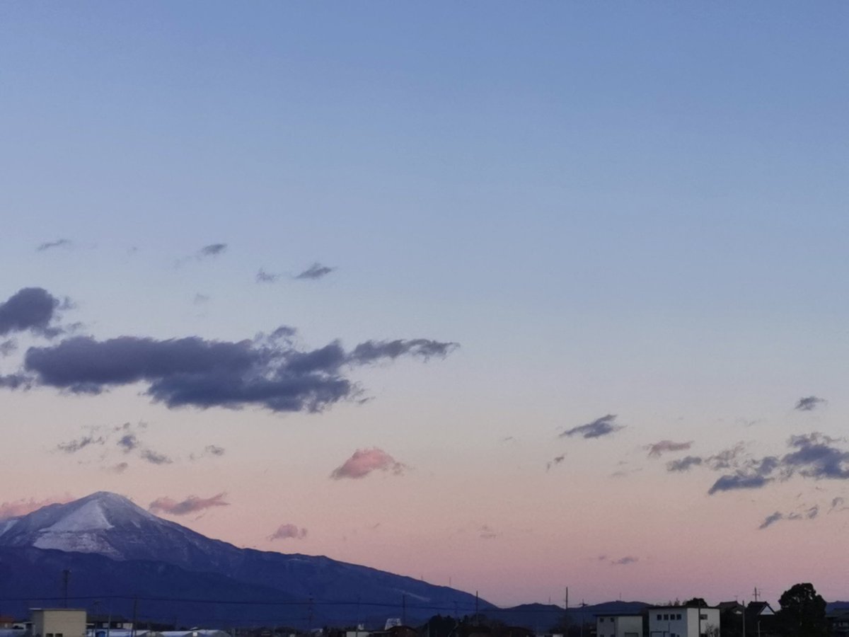 まだ星が見える朝空の青がすごく綺麗.日の出前の朝空も雲が薄桃色で優しかった.雪が降った